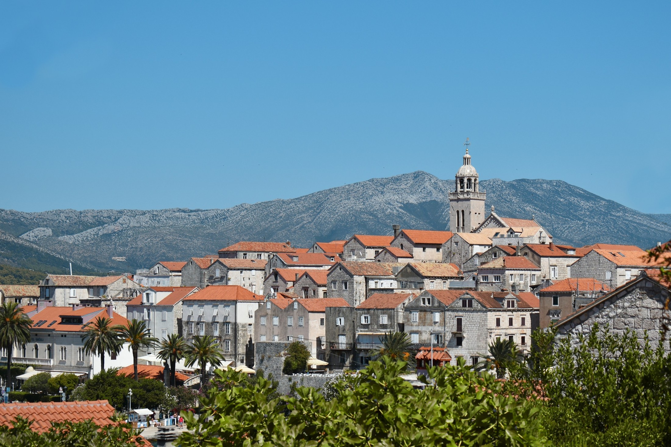 The heart of Korčula island is its Old Town, a compact medieval settlement on a small peninsula. When you enter through the Land Gate, you'll find yourself in a maze of narrow alleys laid out in a herringbone pattern. This design allowed sea breezes to circulate while protecting against strong winds. At the town's highest point stands St. Mark's Cathedral, built between the 14th and 16th centuries. Its façade combines pointed arches and Renaissance sculptures. You can climb the bell tower for views over the town's red-tiled roofs and the surrounding Adriatic Sea.