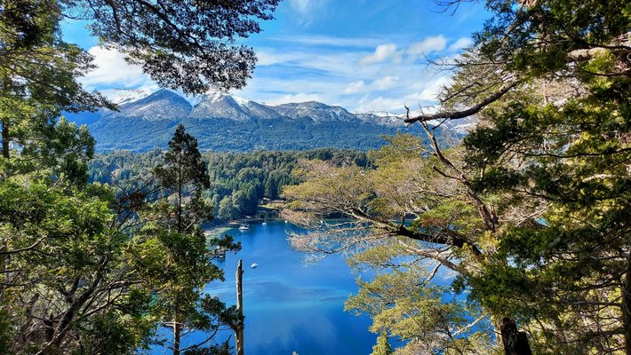 Villa La Angostura is a calm town in Argentina's Neuquén Province, situated on the shores of Nahuel Huapi Lake. The Andes Mountains and dense forests surround this Patagonian destination. You can explore the cinnamon-barked arrayán trees in Los Arrayanes National Park, ski at Cerro Bayo in winter, or paddle on the clear waters of Nahuel Huapi and Correntoso lakes during summer.